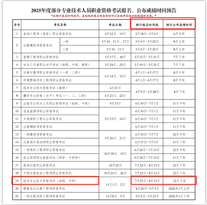 2025年中级经济师报名时间暂未公布,但是中国人事考试网已经针对25年中级经济师报名时间做出预告,预计在7月23日-8月13日之间进行,根据地区不同报名时间存在一定的差距,以下是截取自中国人事考试网的信息(查看>重磅:2025年中级(ji)经济师考试(shi)报名时(shi)间官方预告!):