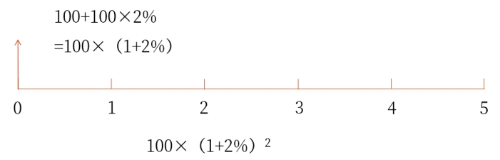 【例题】某人将100元存入银行,年利率2%,求5年后的终值。