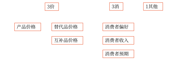(1)影响需求的基本因素:“3价,3消,1其他”。