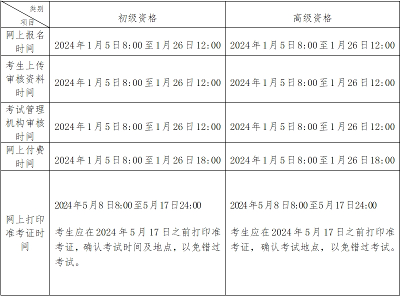 1. 初级资格考试于2024年5月18日至22日进行。具体安排如下: