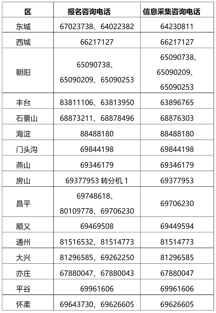 各区财政局信息采集及报名咨询电话: