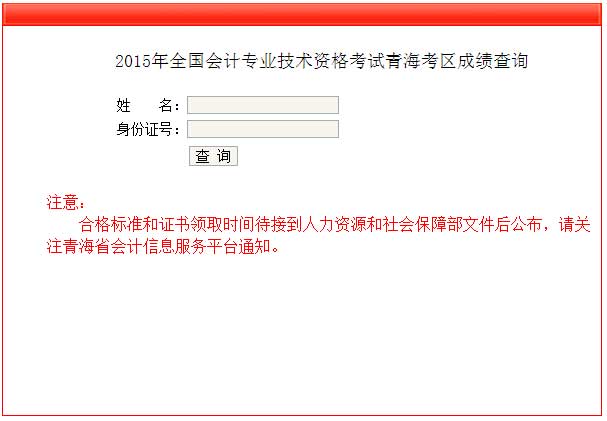 2015年度全国会计专业中、高级资格青海考区考试成绩数据已下发到我省,现予以公布,查询网址://qhcz.gov.cn/kjcj.aspx。