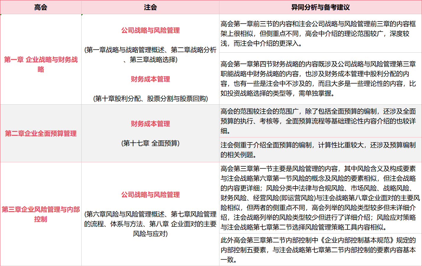 l 财务管理:注会《财务成本管理》的股利分配、企业全面预算等模块,与高会财务战略、全面预算编制等高度一致。
