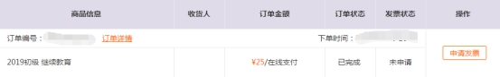 2019年襄阳市会计继续教育课程购买支持开具电子发票,想要申请电子发票的学员可通过“我的订单”页面,找到需要开具的课程订单,点击后方“申请发票”即可申请到相应年度订单的电子发票。