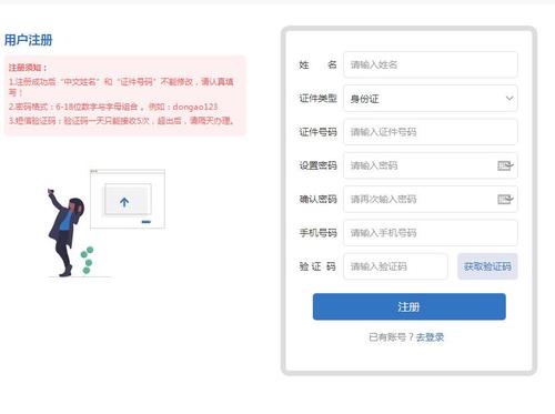 1.注册成功后“中文姓名”和“证件号码”不能修改,请认真填写!