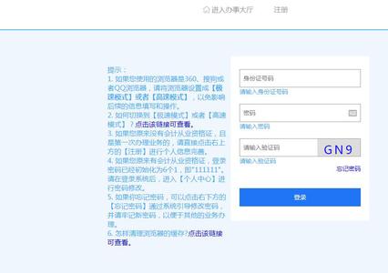 学员原来有会计从业资格证的,输入身份证、密码、验证码,点击登录即可。如果原来没有会计从业资格证,且是第一次办理业务的,请直接点击右上方的【注册】进行个人信息完善。
