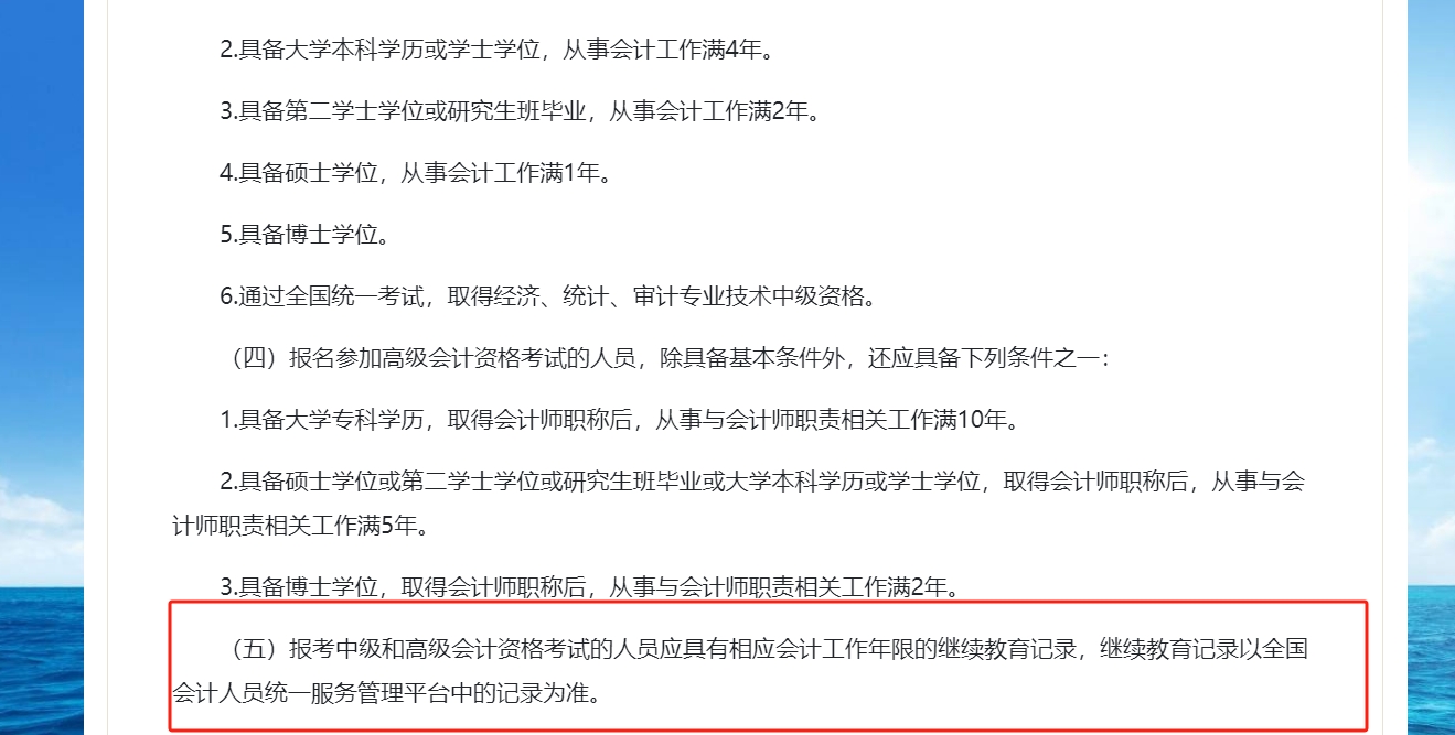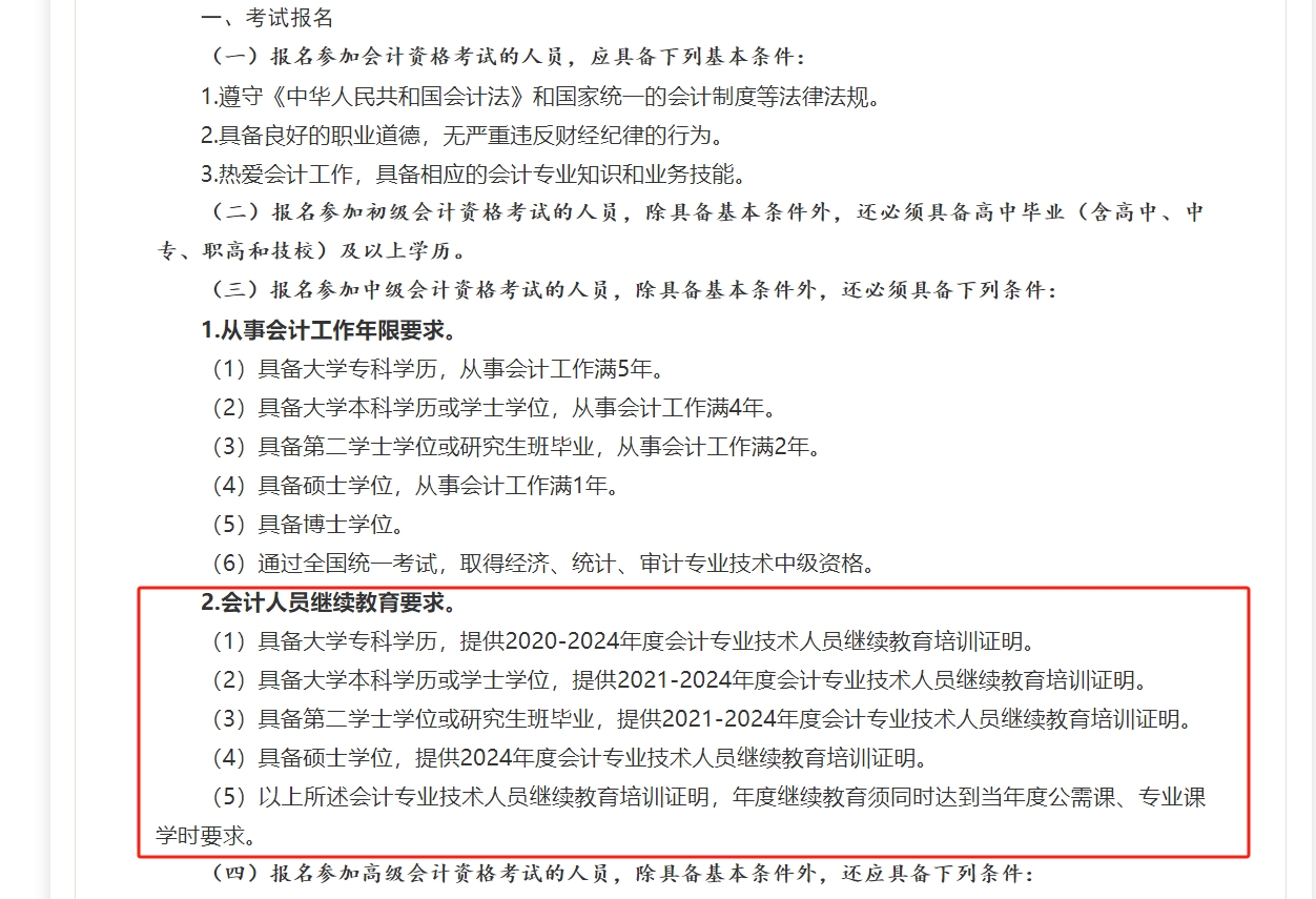 2025年青海省、山东省、新疆等地在中级会计报考条件中明确提出:应具有规定年度的继续教育记录,或是完成规定年限的继续教育。
