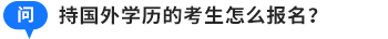 答:持国外学历报名的首次报名人员,需要输入国外学历认证书编号。考生可前往教育部留学服务中心申请认证。已取得国外硕士及以上学历但没有认证,如在国内已取得大专及以上学历的考生,可以使用国内学历报名。