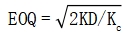 相关公式 | 存货年需要量用D来表示,每次订货量用Q来表示,每次的变动订货成本用K表示,单位变动储存成本用Kc来表示,最佳经济订货量用EOQ来表示 变动订货成本=订货次数×每次变动订货成本=D/Q×K 变动储存成本=平均库存量×单位变动储存成本=Q/2×Kc 当变动订货成本=变动储存成本时,存货相关总成本最小,即:D/Q×K=Q/2×Kc |