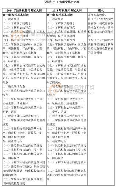 2015年税务师《税法(一)》考试大纲对比