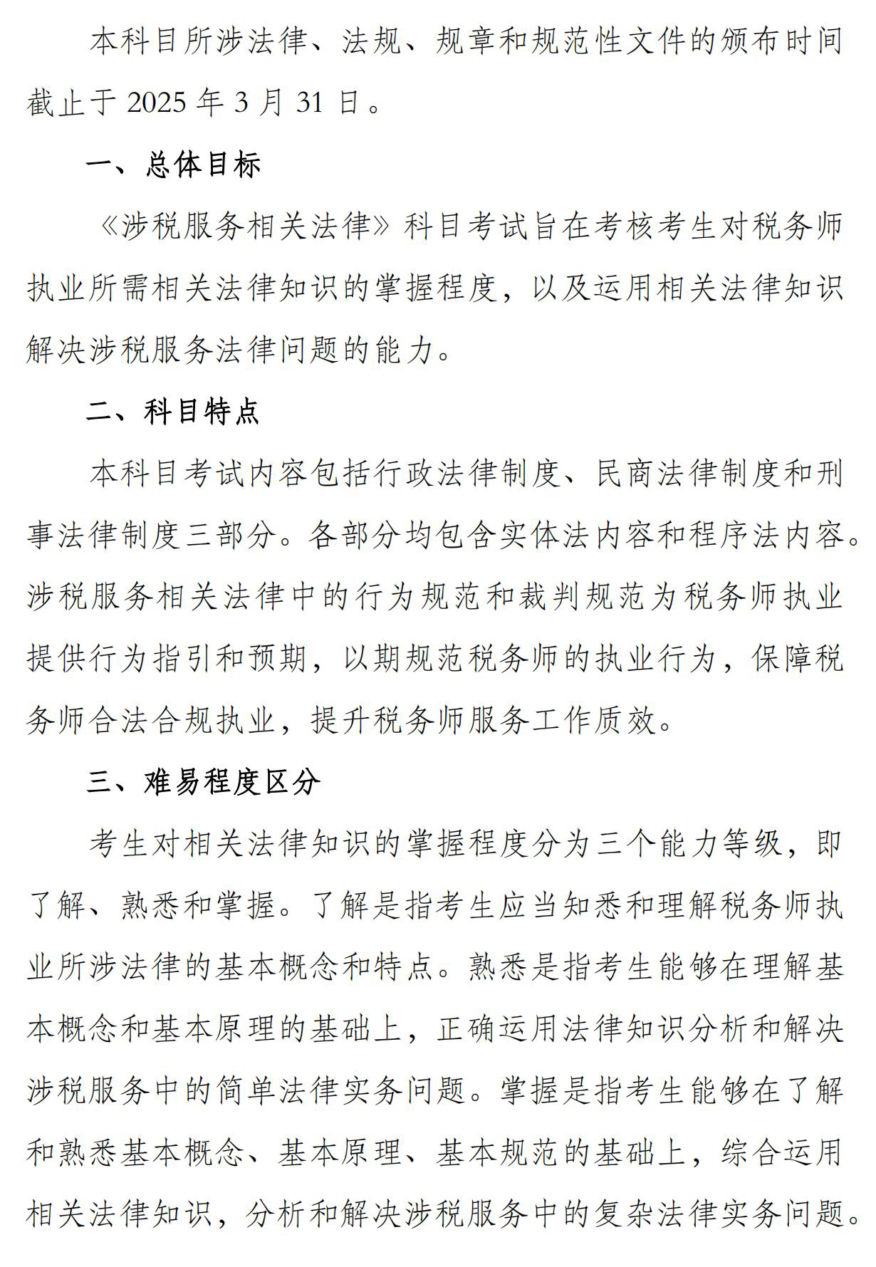 以上就(jiu)是2025年税(shui)务师(shi)考(kao)试大(da)纲的内容,希(xi)望同学(xue)们(men)可以好好利用考(kao)试大(da)纲,完(wan)成备考(kao),顺(shun)利通(tong)过2025年11月15-16日的税(shui)务师(shi)考(kao)试!