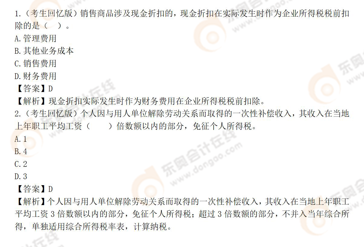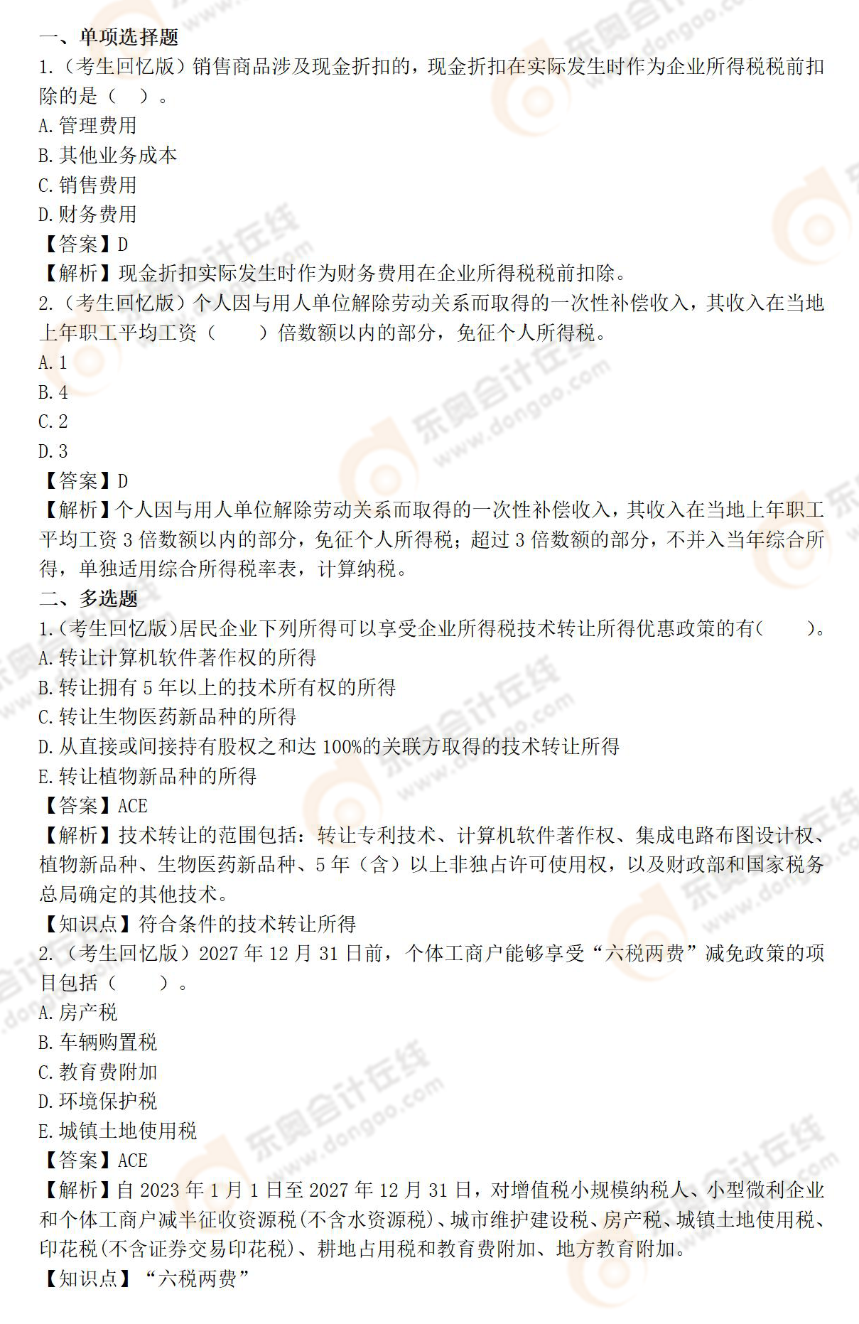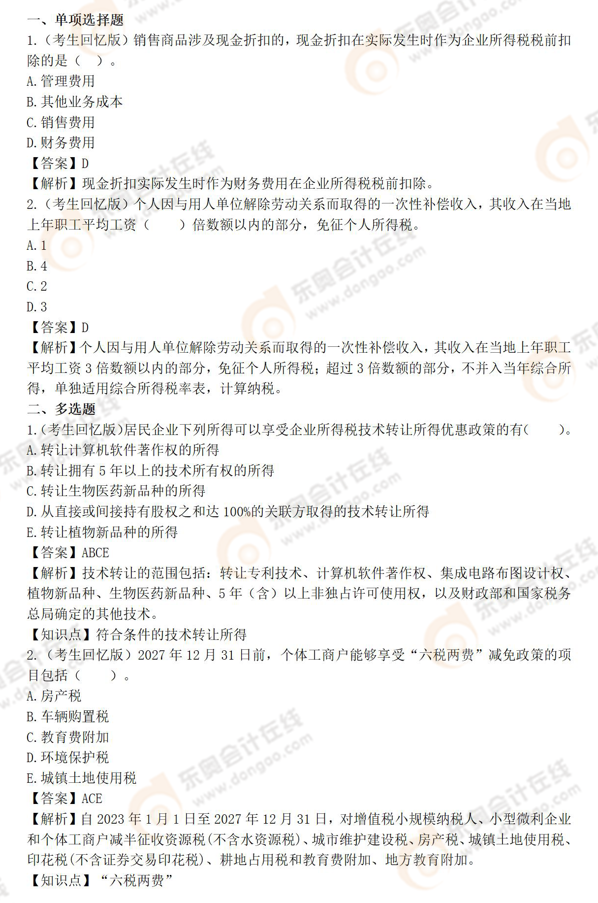 注:以上税务师考试试题内容由考生回忆反馈,东奥教研团队统计,东奥会计在线整理发布
