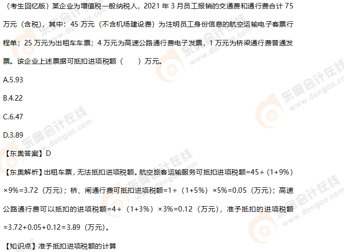 (本文内容由东奥教研团队提供,东奥会计在线整理发布)
