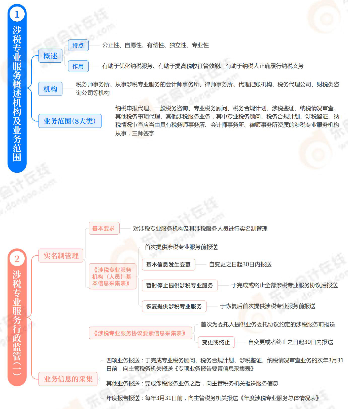通过思维导图,考生们能够一目了然地掌握自己的学习进度和知识结构,从而更加直观地了解自己的学习情况。东奥会计在线为考生们整理了税务师《涉税服务实务》第一章的思维导图,快来学习吧!
