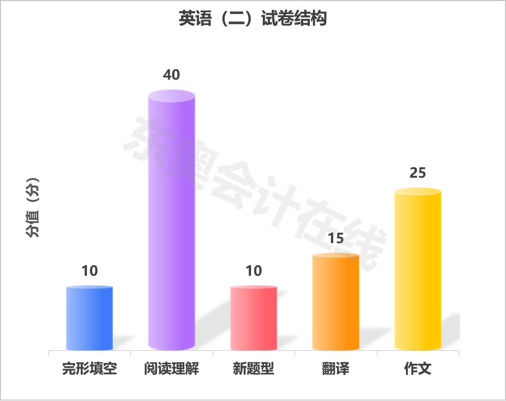 上面是非全日制研究生考试英语的题型分值占比,我们一眼就能看出,“阅读理解”分数最高,这也是最能拉开分数差距的,加上“作文”,这两道题就65分了。