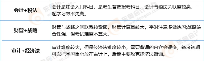 会计+审计+税法:这3个科目的内容有些是有关联的,学习审计要有一定的会计基础,有了会计基础能更好的帮助大家去理解审计一些内容。而会计和税法的结合也是很紧密的,例如会计中的所得税、会计负债中涉及到的应交税费等等。会计和审计都是比较难的科目,搭配一科难度相对较低的税法备考,也是个不错的选择。这三科的学习压力虽然大,但是回报也比较大,建议以会计和审计为主,去会计事务所工作就能够很快上手。