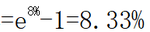 如果年复利次数非常非常多(复利期间非常非常短),在某报价利率下,年实际利率趋近于 ,我们称之为连续复利,当报价利率是8%时,连续复利的有效年利率 | |
