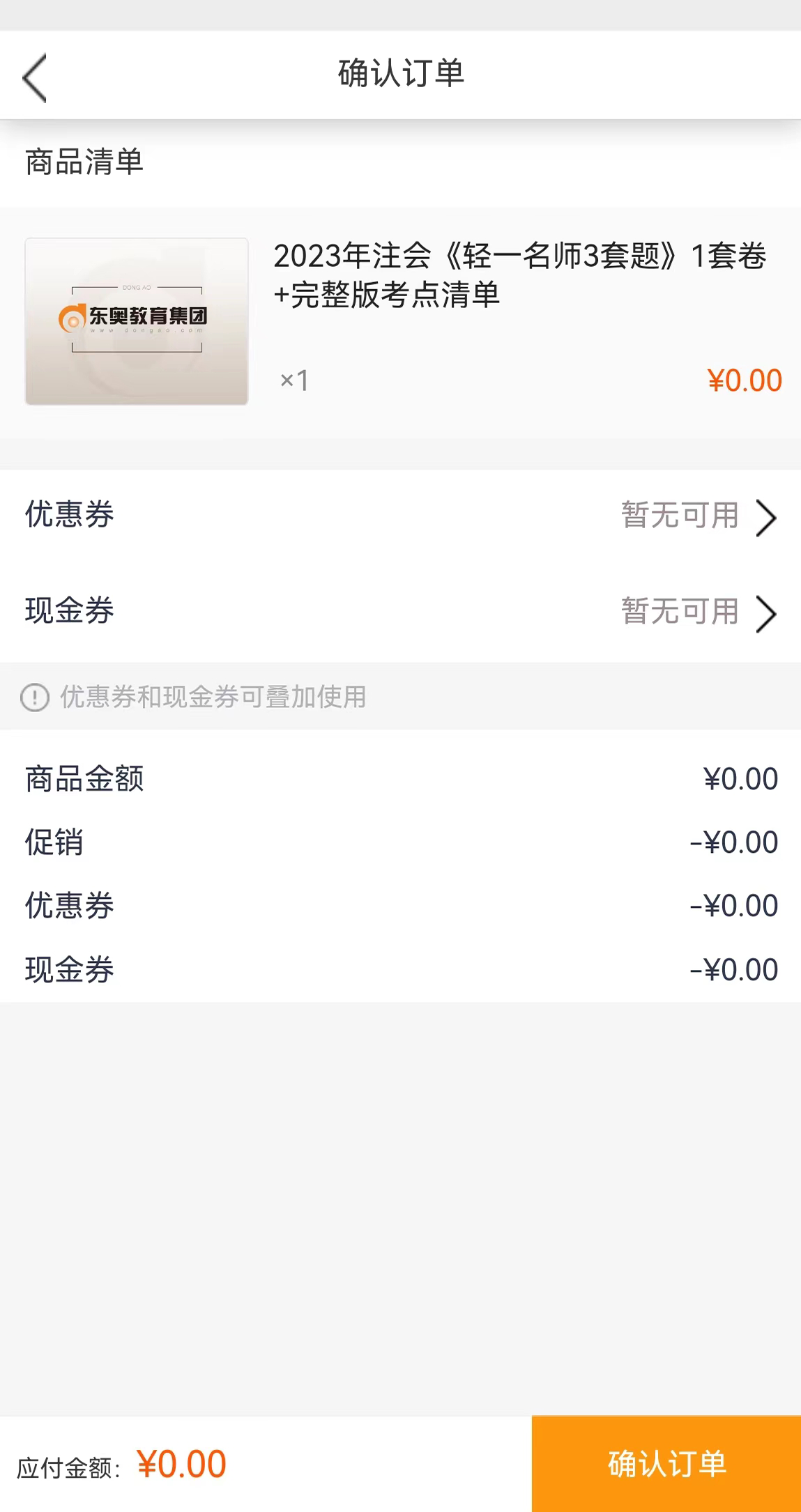 点击“点击0元领取”按钮,登录加入购物车后,确认订单并完成结算。