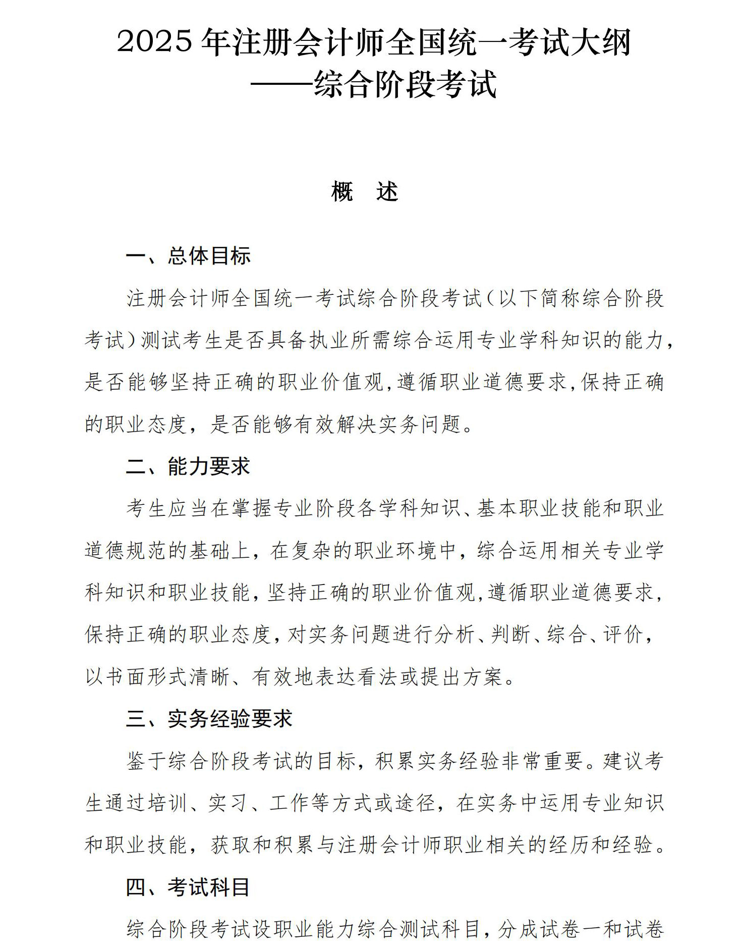 2025年注会综合阶段考试大纲现已公布!快来了解!