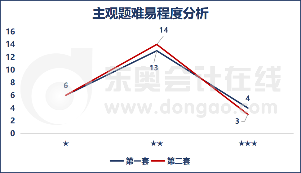 在经济法考试中,主观题考点以2星难度为主,1星和3星难度题目较少。在第一批次考试中,2星难度题目数量为12道,在第二批次考试中,2星难度题目数量为14道。
