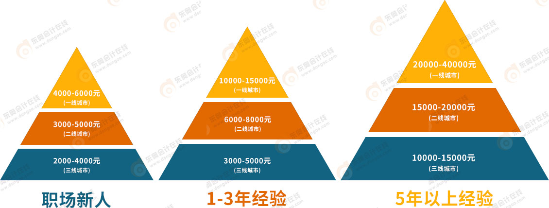 注册会计师的薪资水平在不同城市存在较大差异,此外,薪资水平还会受到工作年限的影响。从下图中我们能够看出,拥有5年及以上工作经验的注册会计师薪资水平相比职场新人和资历尚短的注册会计师要高出数倍!
