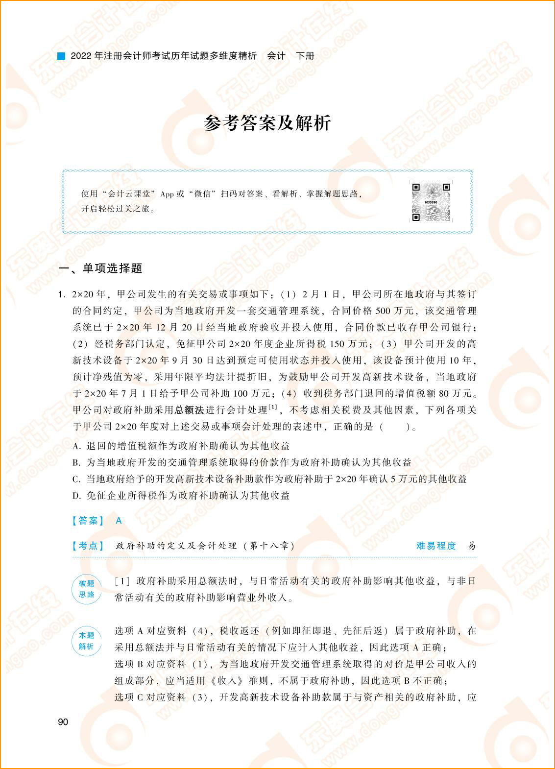 历年考试题答案及解析是非常重要的备考资料,以上的2021年注册会计师《会计》试题答案及解析大家可以免费下载使用。2022年注册会计师考试时间是8月26-28日,东奥注会《轻一》焕新升级,适合于所有备考注会考试的考生。好书助力提升,现货7折热卖中>>>