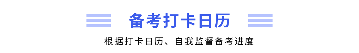 在学习过程中,考生可以利用“备考日历打卡表”进行监督和记录,打卡表按照月份进行排列,可以将此打卡表打印在A4纸上,进行自我监督。如果完成了当日学习任务,就可以在方框内画上“√”,成就感满满。