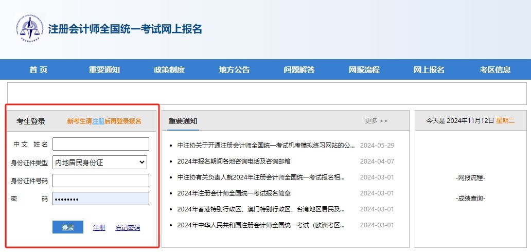 第3步:考生输入姓名、身份证号码、密码,登录网报系统。