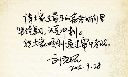 刘圣妮老师亲笔写给注会考生们的诚挚祝福: