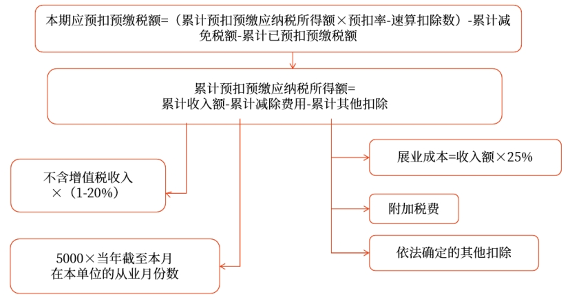 本期应预扣预缴税额=(累计预扣预缴应纳税所得额×预扣率-速算扣除数)-累计减免税额-累计已预扣预缴税额