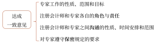 无论是对内部专家还是外部专家,注册会计师都应当就下列事项与其达成一致意见,并根据需要形成书面协议。(★★★4个方面)