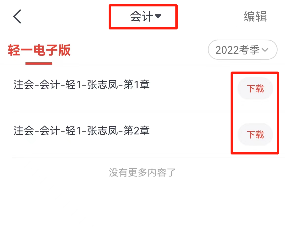 ■ 步骤三:选择不同科目,下载各个科目《轻一》电子版内容