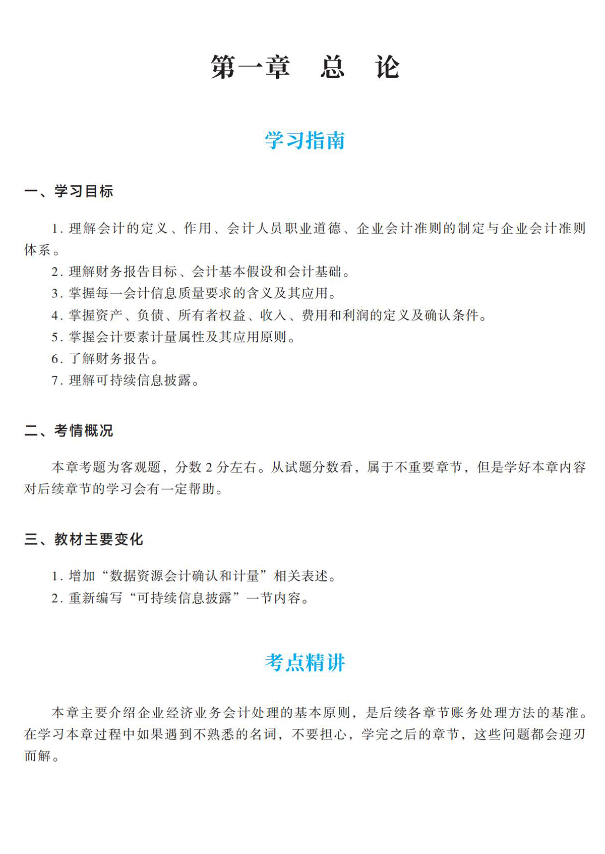 首先是学习指南部分,老师将从学习目标、考情概况、教材变化等几个角度,让考生对整章内容有宏观的把握。