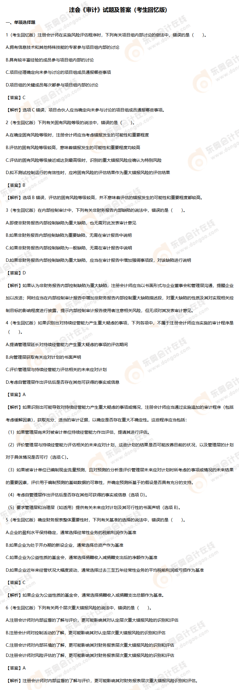 注:以上注册会计师考试试题内容由考生回忆反馈,东奥教研团队统计,东奥会计在线整理发布
