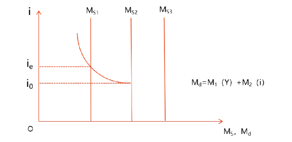 (1)凯恩斯认为,货币供给(MS)是外生变量,由中央银行直接控制。因此,货币供给独立于利率的变动。