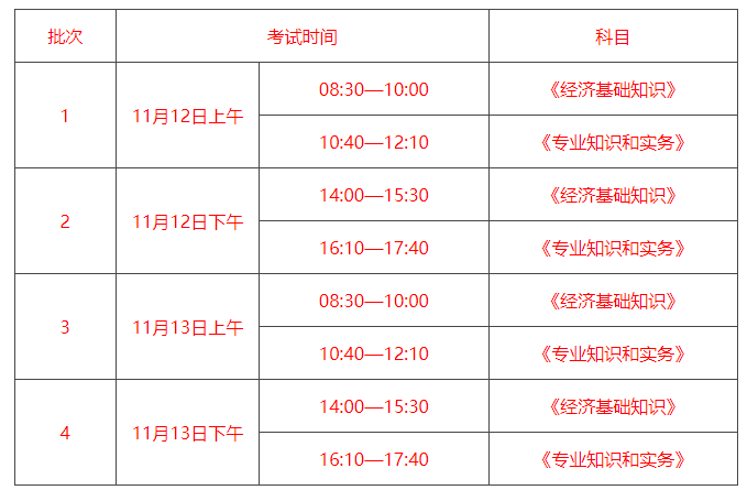 根据陕西、新疆等地近日发布的考务安排我们得知,2022年中级经济师考试安排预计分为四个批次,并且两门考试科目之间有40分钟间隔时间,具体时间安排请参考以下内容: