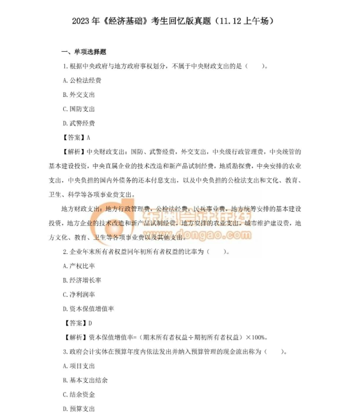 参加2023年中级经济师11月12日上午《经济基础知识》考试的同学们请注意,结束考试后同学们比较迫切的知晓考试真题及其解析,考后短时间的记忆也是比较牢固了,东奥会计在线的老师们为同学们总结了关于2023年中级经济师《经济基础》回忆版真题(11月12日上午场),一起来看看吧。
