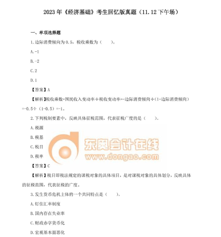 2023年中级经济师考试已经结束了,参加12日下午《经济基础》考试场次的同学们注意了,东奥会计在线的老师们根据同学们的回忆为大家总结了“2023年中级经济师《经济基础》回忆版真题(12日下午)”,具体的答案解析内容如下。