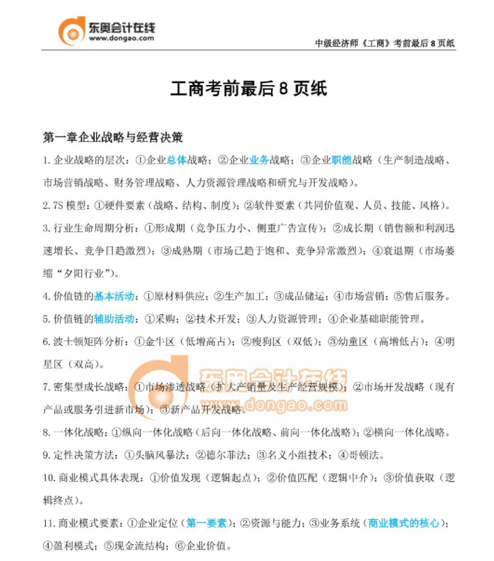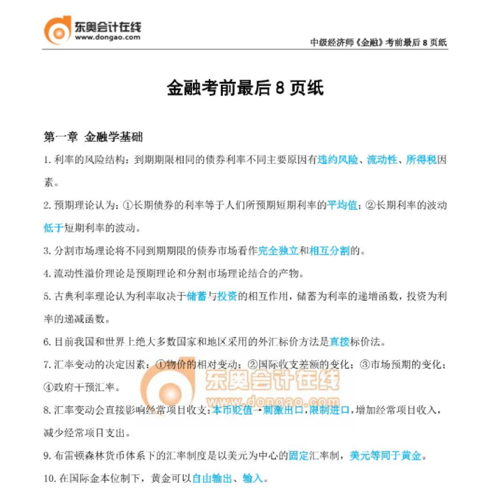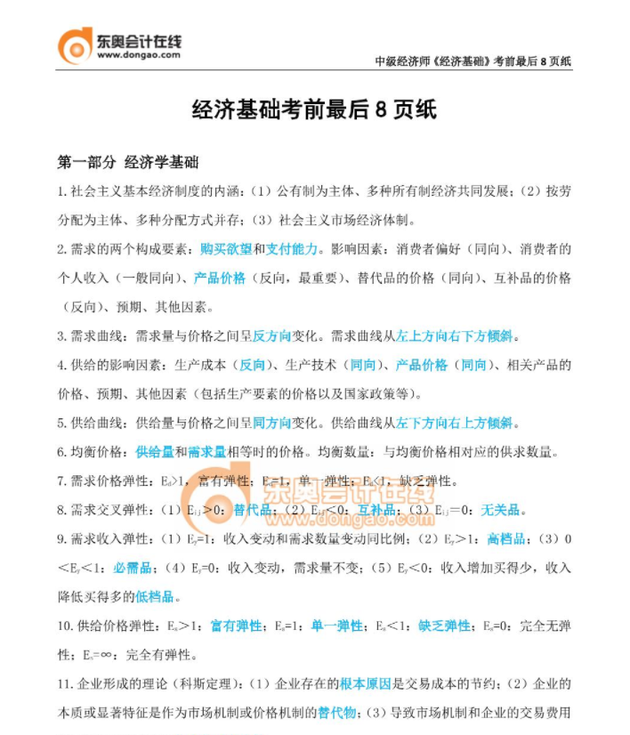 2024年中级经济师考试得备考进入最后冲刺阶段,大部分考生已经是进入收尾阶段了,此时的同学们脑海中已经对于知识点有着一个清晰的框架,为了方便考生备考并且帮助同学们梳理重点,东奥会计在线的老师们为考生们总结了“2024年中级经济师考试考前必背8页纸”,包含了《经济基础》与四大热门专业科目,下载入口详见下文。