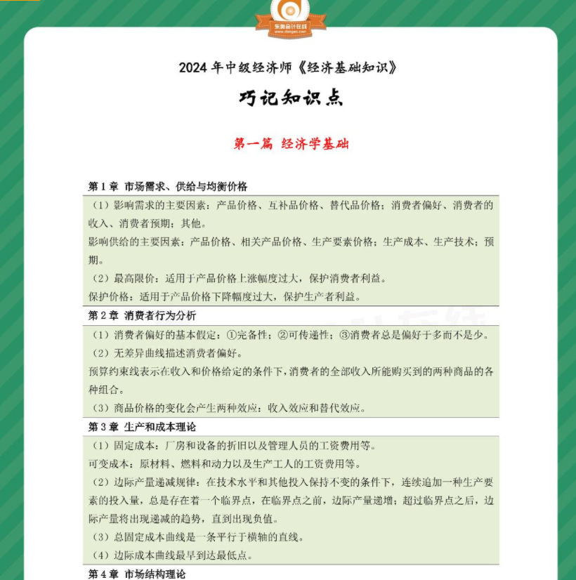 2024年中级经济师《经济基础》巧记知识点