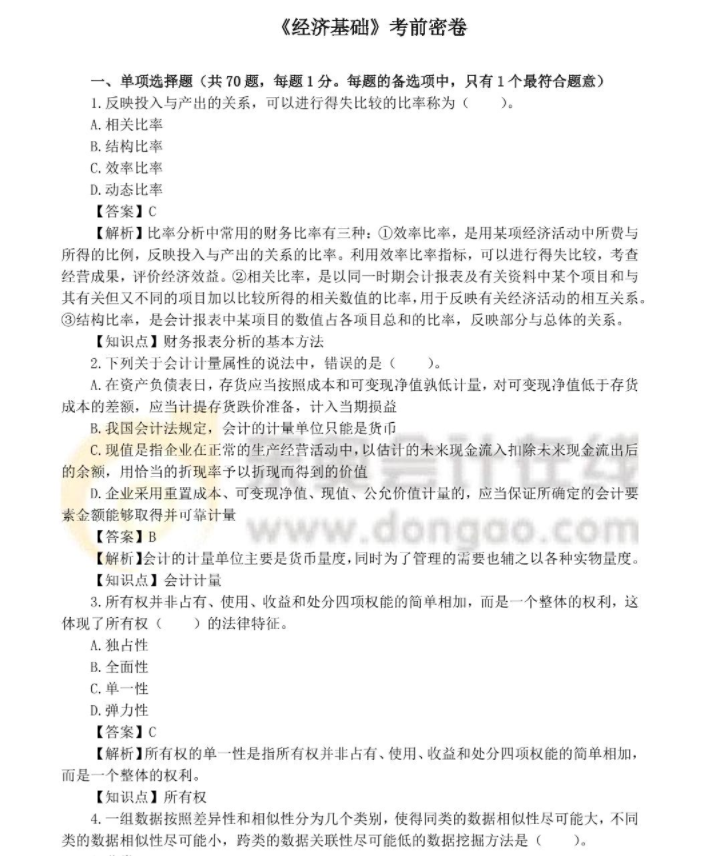 2025年中级经济师考试在即,备考关键期如何精准突破?东奥教研团队的为同学们总结各科目的考前模拟试卷,深度聚焦历年高频考点,以全真模拟题的形式给出。临考前测试自己的学习进度与学习水平再好不过了,以下是《经济基础》的测试卷,具体如下。