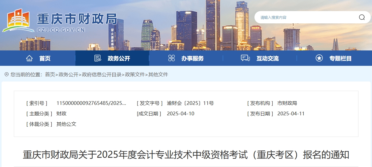 2025年重庆市江津区中级会计职称考试报名简章公布