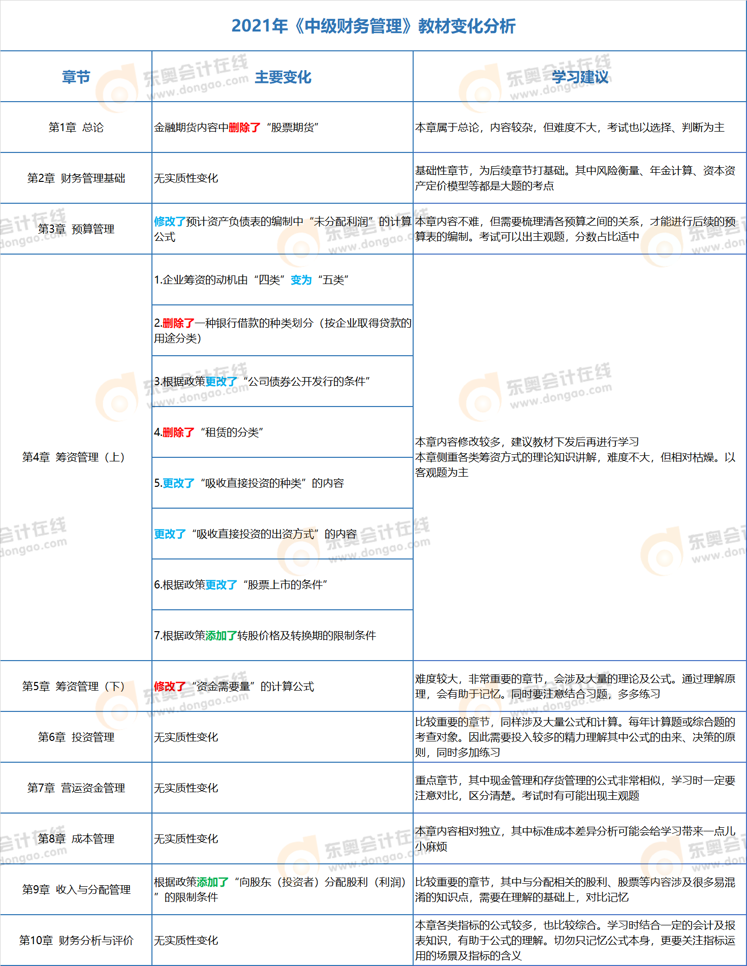 2021年教材总体内容变化小,第四章筹资管理(上)本章变化相对其他章节较大,几乎每一节都有涉及。