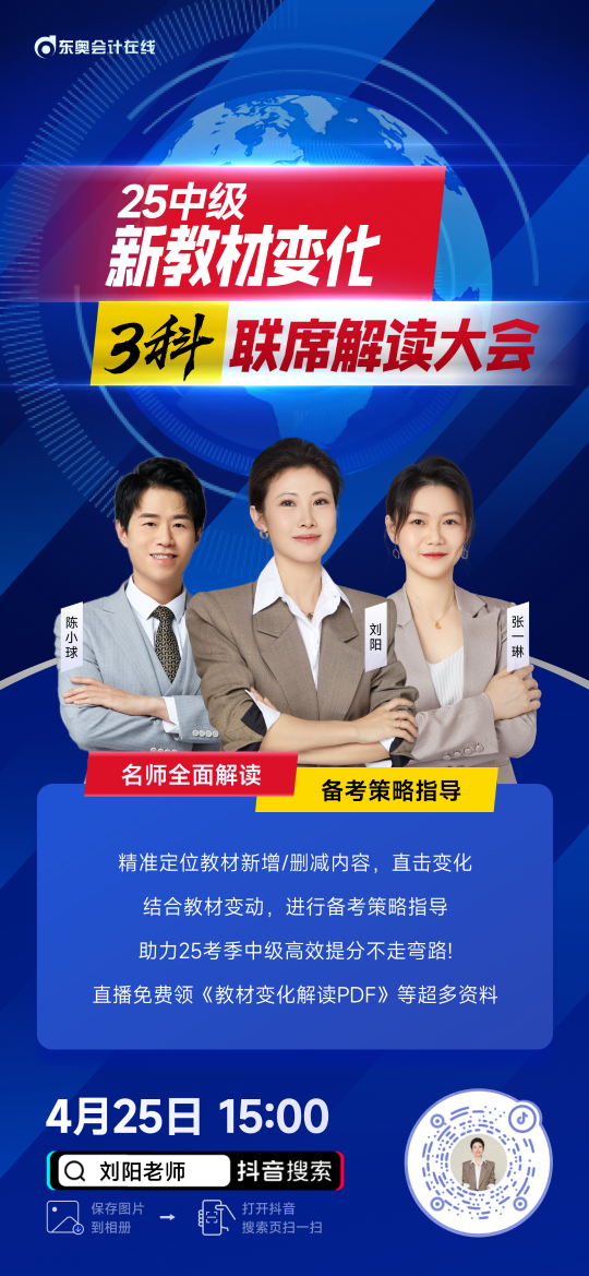 2025年中级会计教材即将发售,为了让广大考生提前了解到中级会计新教材的变化,东奥的老师们特为大家直播解读《中级会计实务》、《财务管理》、《经济法》三科的教材变化和备考指导哦!千万别错过!